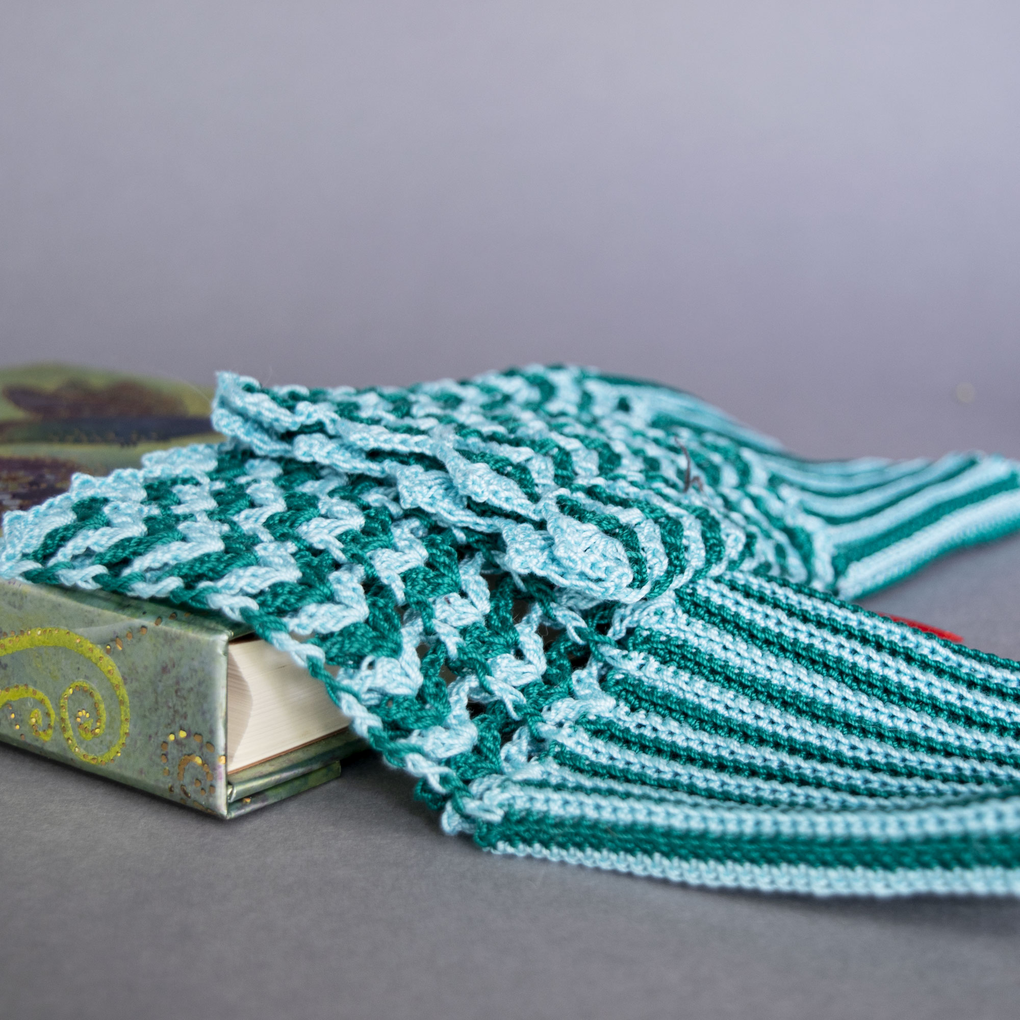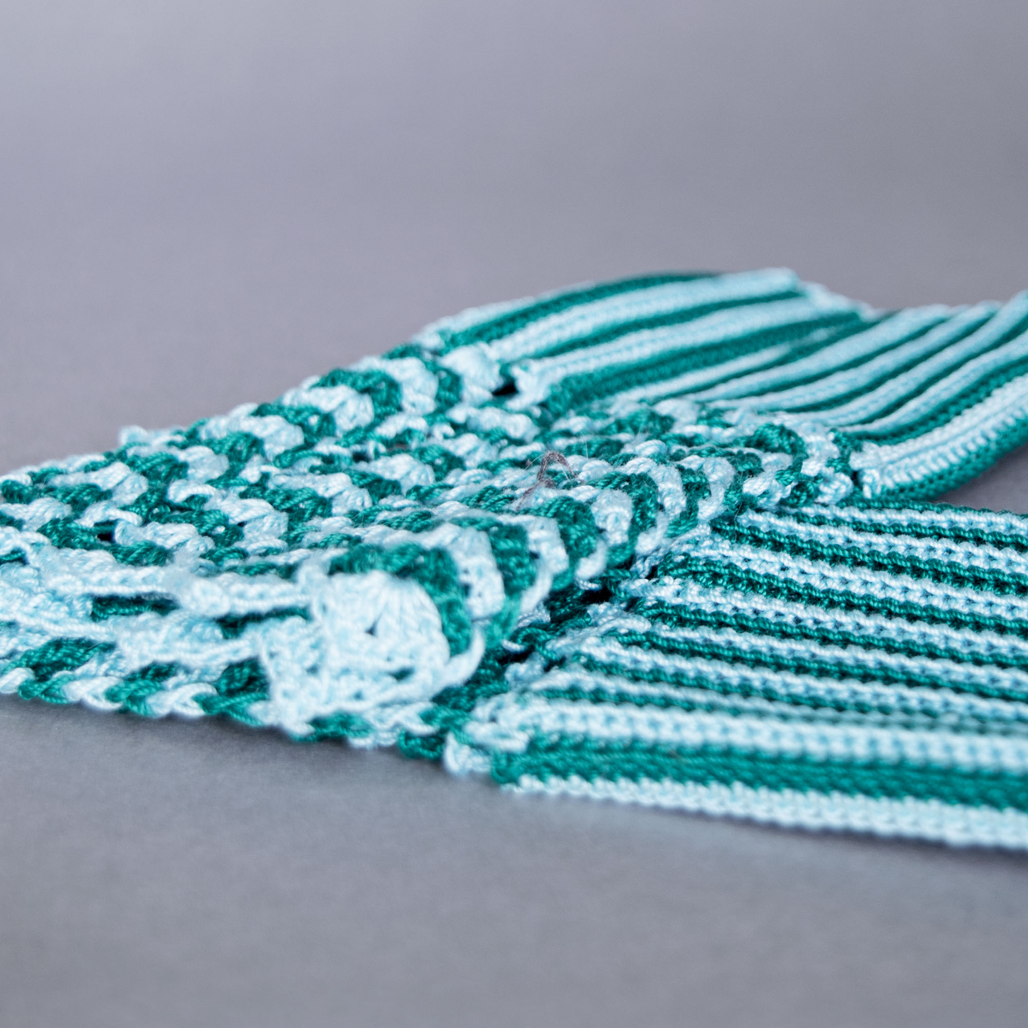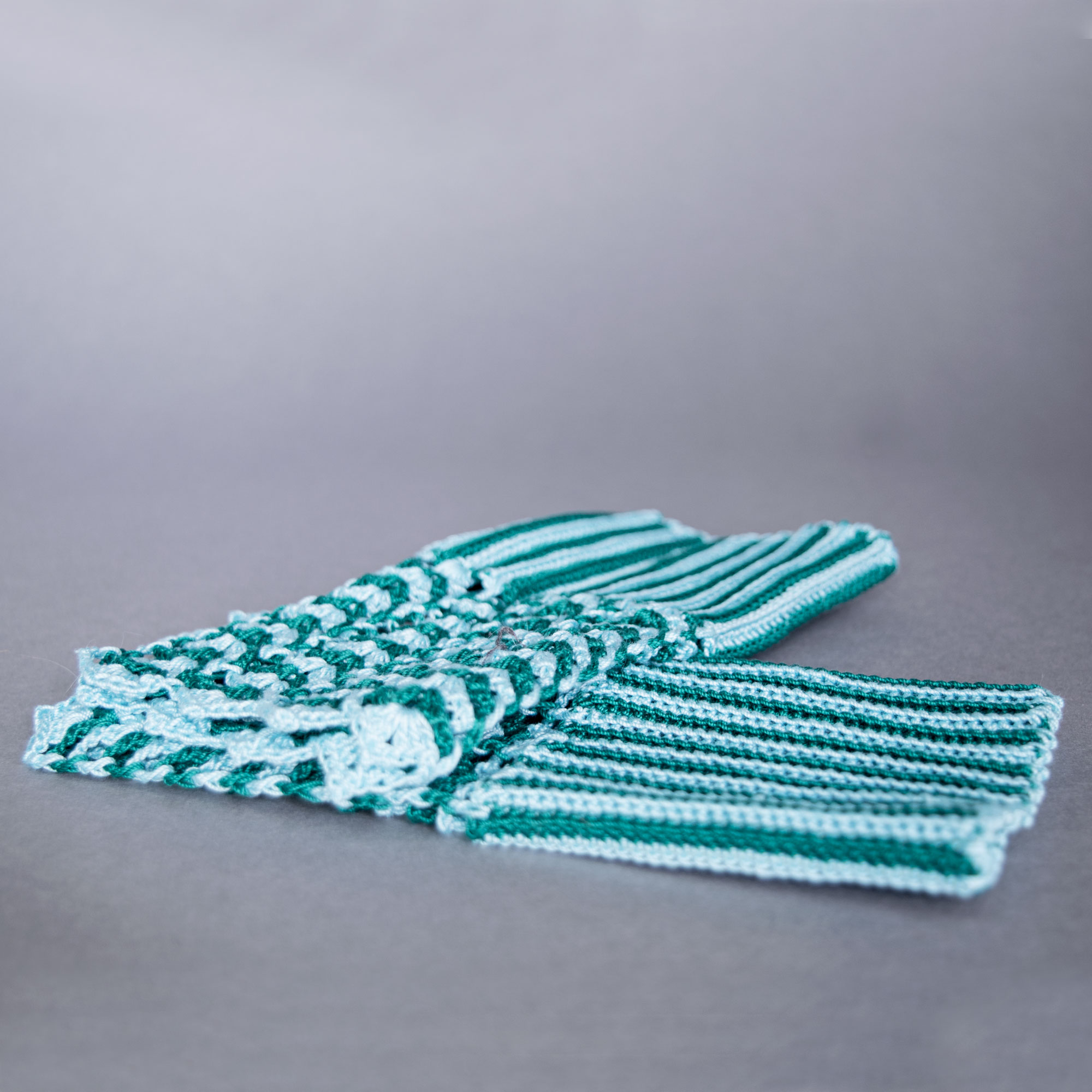 Baumwollfäustlinge in zwei verschiedenen Blautönen mit Häkeltechnik